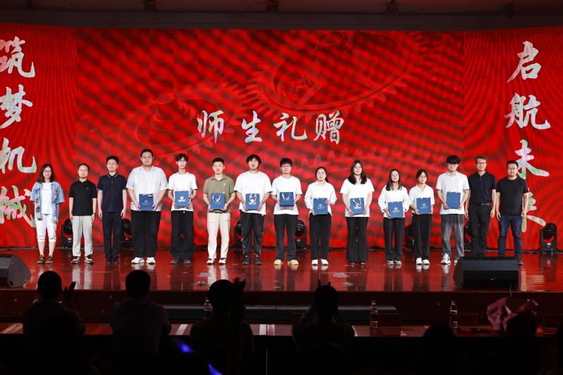 受表彰学生代表、国家奖学金获得者、机设213班万华让和研22丁晨晨先后作了发言。毕业生代表向教师代表敬送鲜花,表达对师恩最真挚的谢意。教师代表向毕业生赠送纪念品,祝福毕业生们扬帆远航、前程似锦。